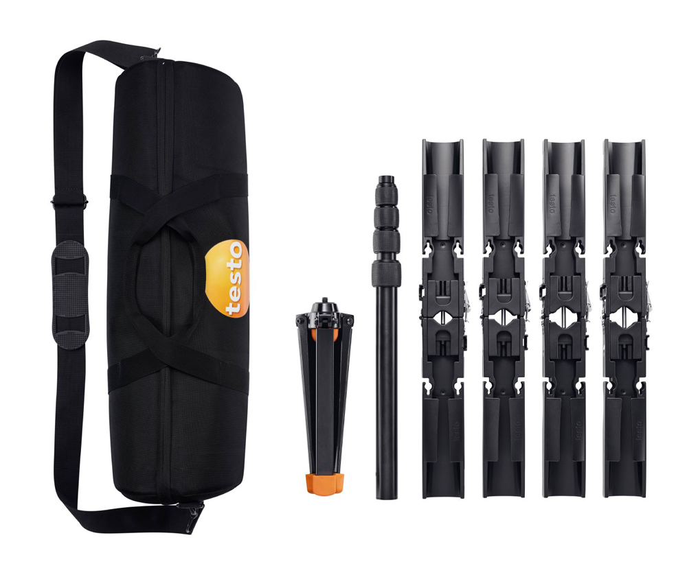 Measuring tripod for IAQ and comfort level measurements, consisting of folding stand, mounting rod, 4 x probe mounts, including bag.