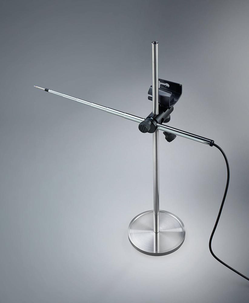 Use the measuring tripod in conjunction with the appropriate IAQ measuring instrument and the corresponding probes for accurate measurement of flow velocity in laminar flow cabinets in accordance with DIN EN 14175-3/-4.
