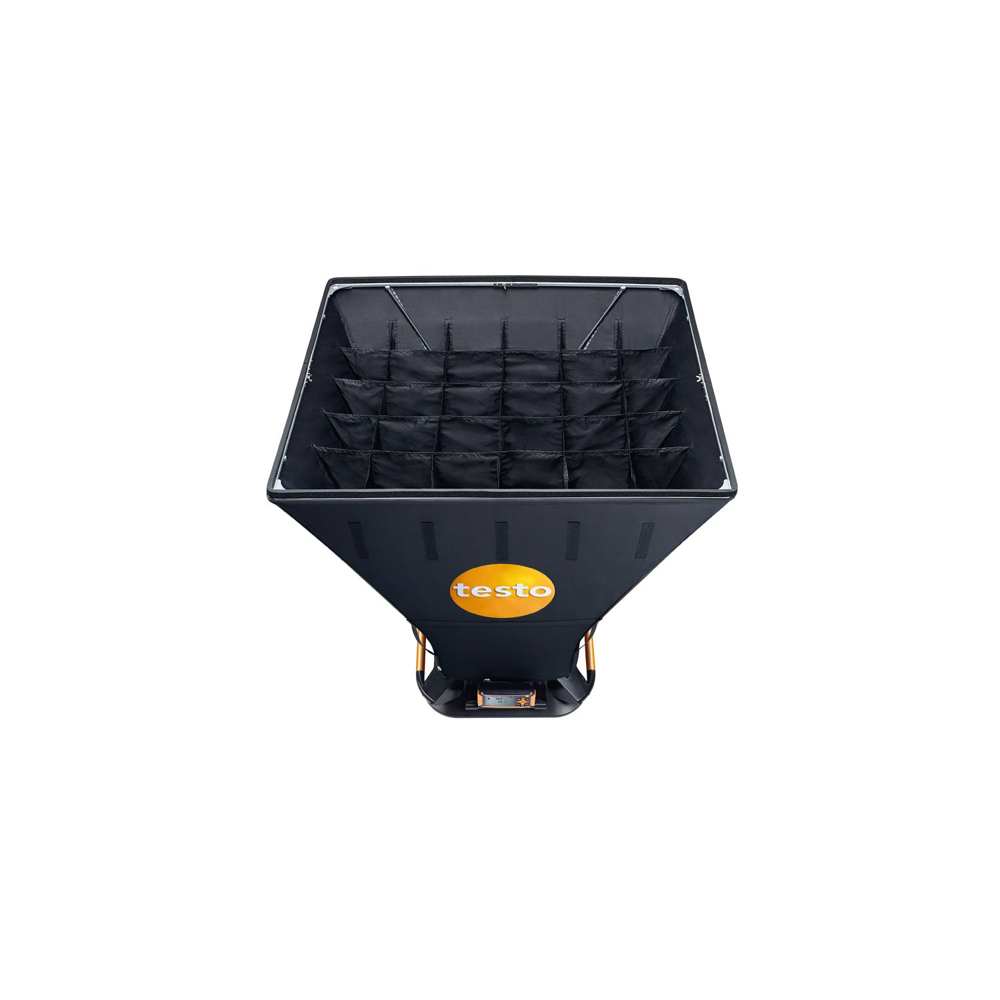 Optional 36" x 36" capture hood for use with the testo 420 air flow capture hood, for measurements at air inlets and outlets. Includes an integrated flow straightener for high-precision measurement results, with 35" x 35" inner dimensions.
