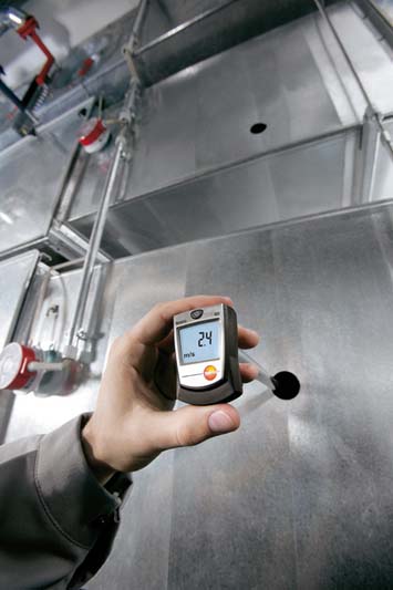 testo 405 is a thermal anemometer with a telescopic handle (max. extension length: 300 mm). It facilitates the measurement of air flow, volume flow and temperature.