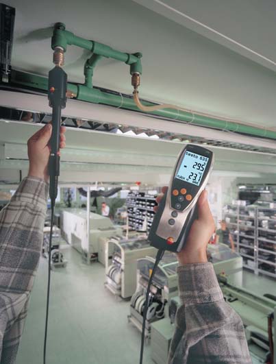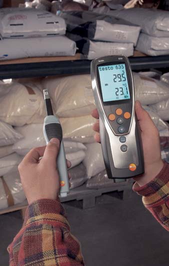 The instrument for measuring air moisture, material equilibrium moisture and pressure dewpoint in compressed air systems. Up to 3 temperature or humidity probes can be displayed; data transmission is radio-controlled, i.e. wireless. Measurement data can be transmitted by infrared to the Testo printer. It is also possible, during cyclical printing, to print measurement data once every minute, for example. testo 635 immediately displays the dewpoint difference between ambient air and the wall surface when analysing moisture on walls and ceilings. There are precision probes up to -60°C tpd available to inspect pressure dewpoint in compressed air systems. The humidity sensor developed by Testo has proven itself world-wide and has outstanding features in terms of precision, long-term stability, temperature resistance and robustness.