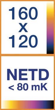 - Thermal sensitivity < 80 mK: Thanks to an excellent temperature resolution of < 80 mK, even small temperature differences are visible.