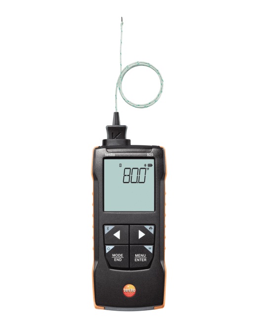 One Type K thermocouple probe is included in delivery. However, the testo 925 is also compatible with other commercially available TC Type K probes.