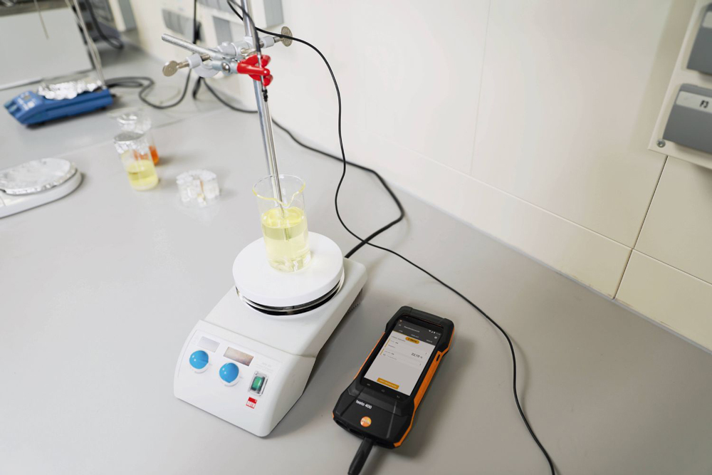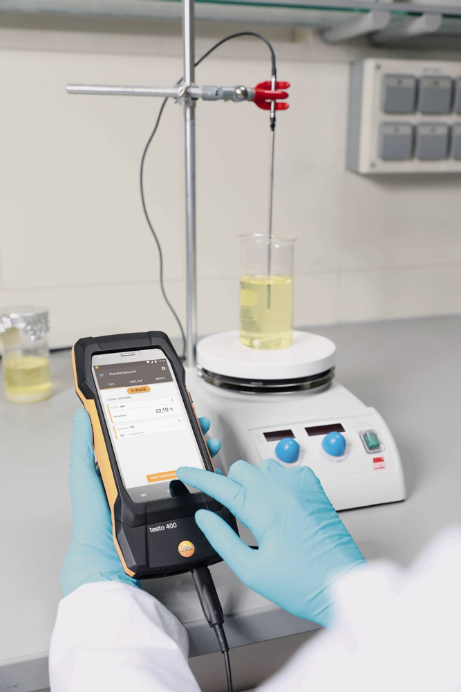 Measuring temperature in the laboratory: The digital Pt100 laboratory probe with replaceable glass sheathing (together with the compatible measuring instrument) takes measurements in corrosive media.