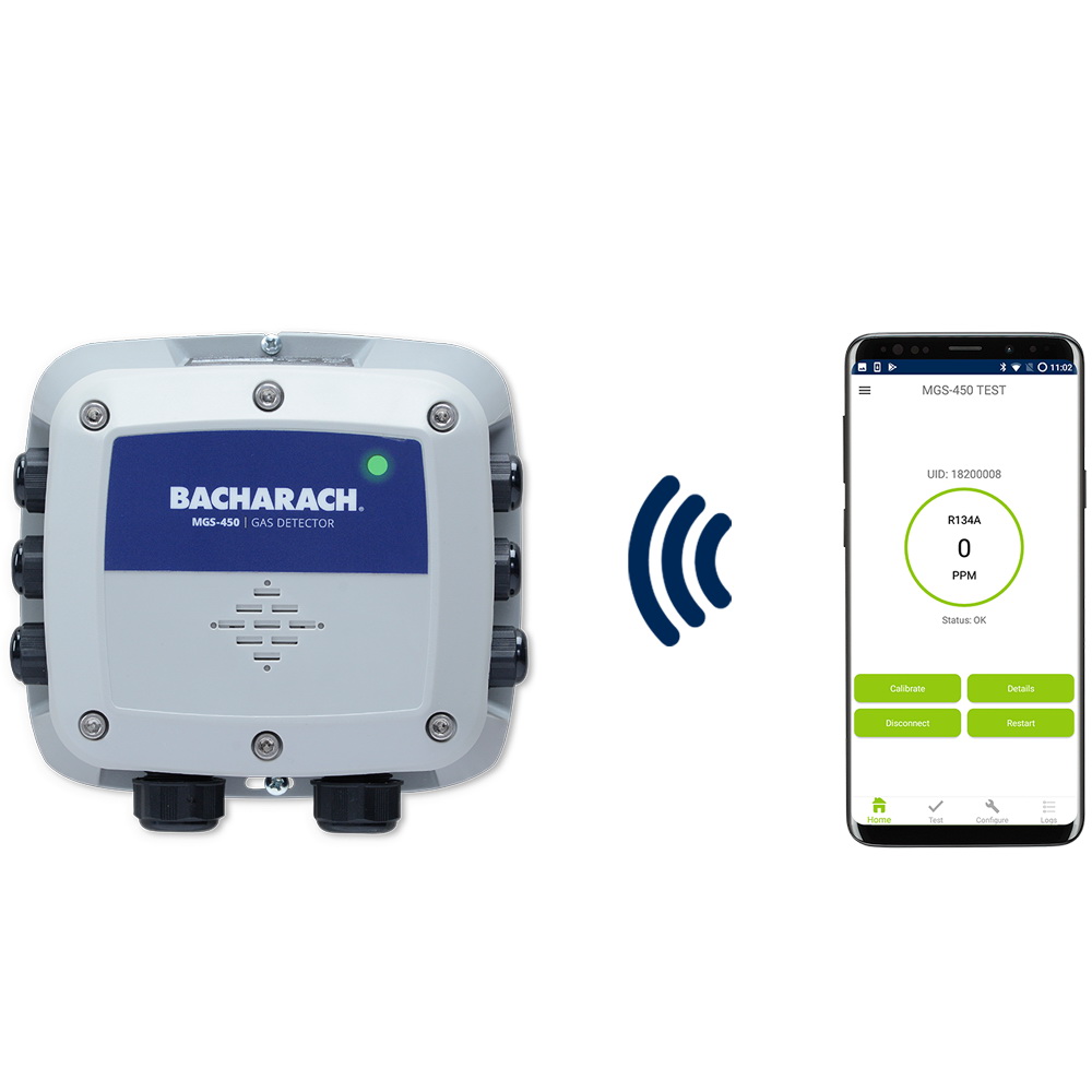 Bacharach's MGS-400 Gas Detectors makes compliance with mechanical equipment room and refrigeration safety codes simple and easy, saving time and money on equipment and installation. Using the MGS-400 App, users can intuitively use, commission and maintain their gas detection system without the need for specialty training or tools. Pre-calibrated sensor modules simplify maintenance, take minutes to exchange and do not require the use of calibration gas. The MGS-400 sensors can trigger additional audio-visual alarms and act as a standalone gas detection system, or integrate easily into a BMS / BAS or with Bacharach's optional MGS-408 Gas Detection Controller.