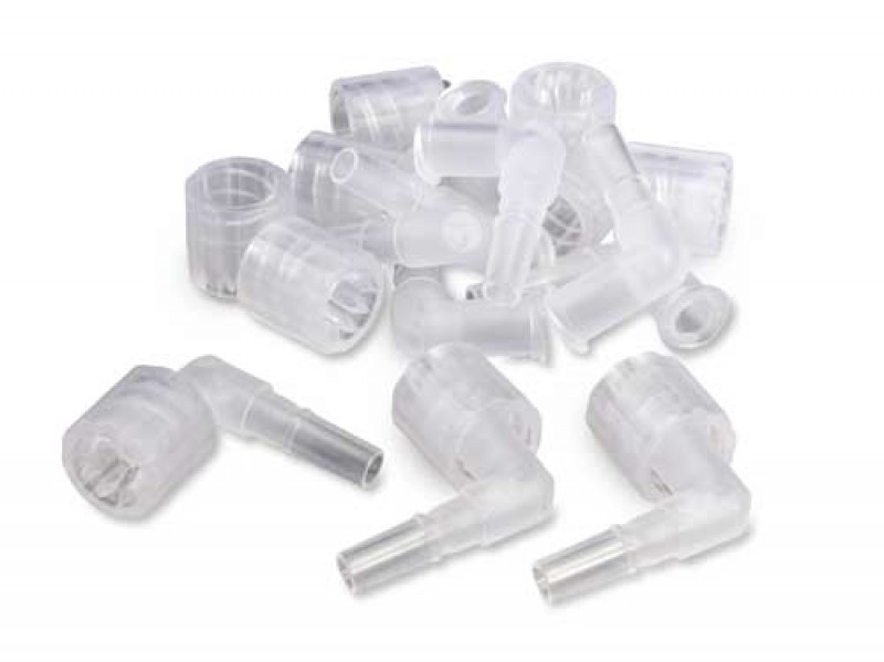 90 degree inserts to reduce protrusion when connecting sampling tube to Gas-Pro flow plate. Box of 10.