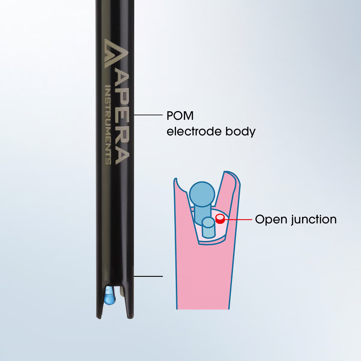 - Equipped with Swiss LabSen 333 pH/Temp. Electrode engineered for dirty liquids such as wastewater, suspensions, emulsions, and slurries with an open junction and long-life reference system