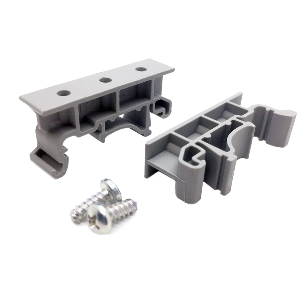 Rugged brackets are made in Germany and easily click on and off of DIN rail. Kit includes two brackets and two thread-forming screws for plastic sized for mounting Agrowtek's products to the brackets.