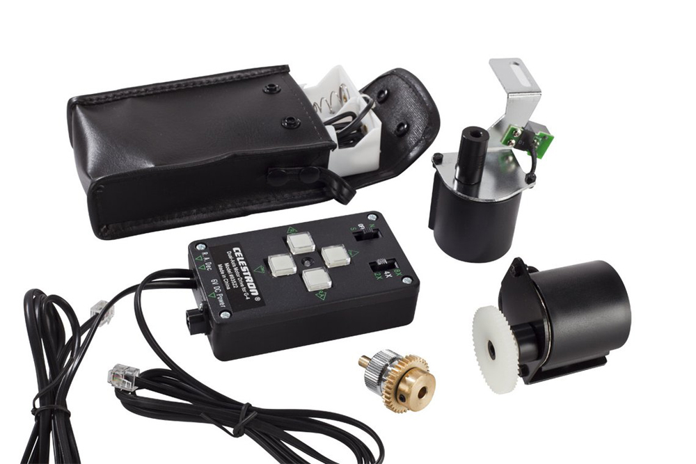 This package includes an RA and Dec motor, clutch, mounting brackets and hardware, drive corrector hand controller, and power pack.