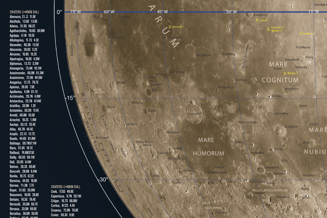 - Features a directory of the best craters and lunar features with coordinates to find them