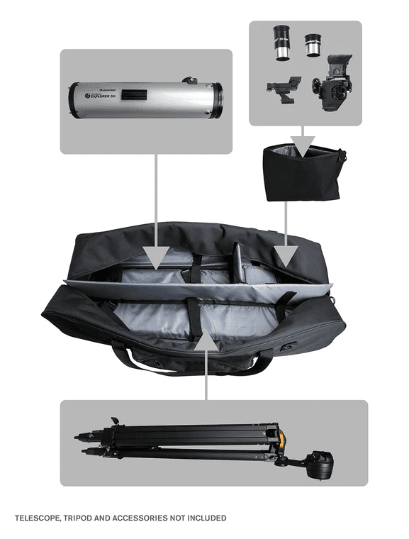 - Store your entire telescope kit—optical tube, mount, and tripod—in one protected, portable, grab-and-go case.