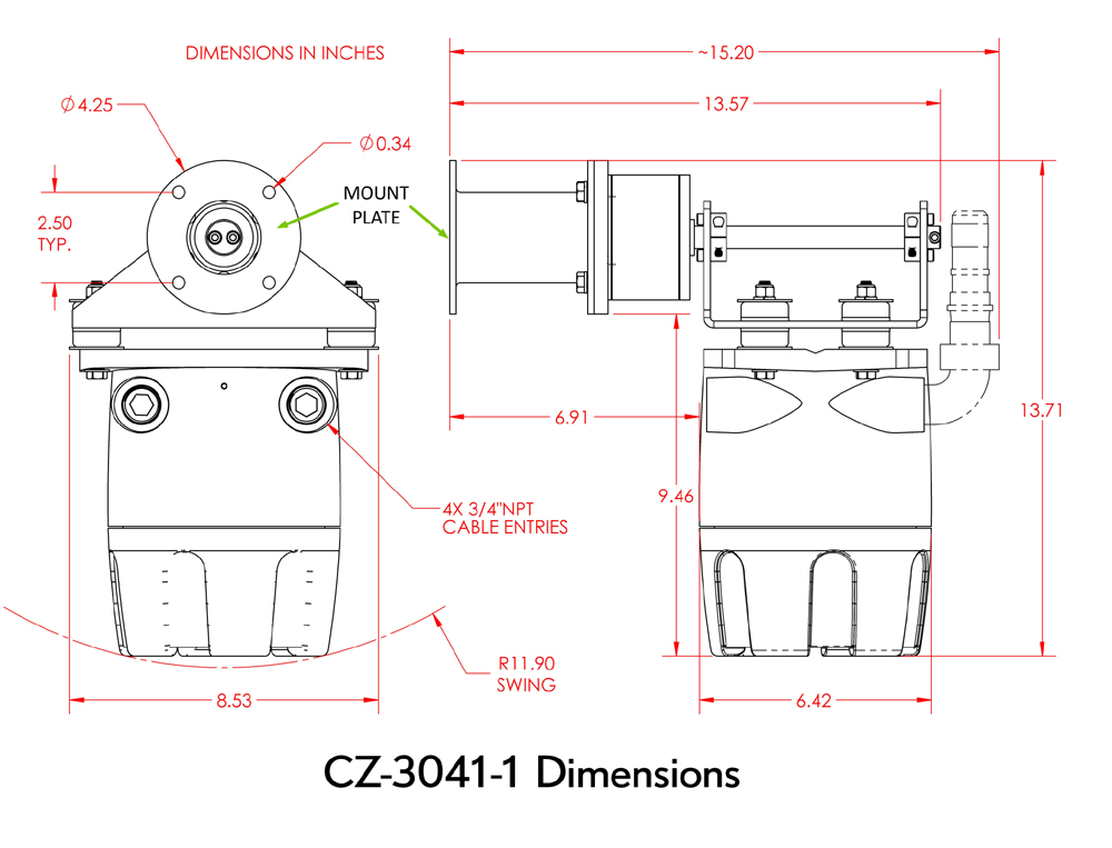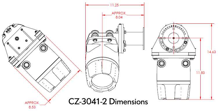 The CZ-3041-1 is a high quality video solution designed to be mounted on crane booms. A high-resolution, analog, color video camera is housed in a rugged weatherproof enclosure suitable for hostile environments. The enclosure is sealed and certified for Class I Division 1, groups B, C and D, Class II Division 1 groups E, F, and G, AEx d IIC, ATEX Exd IIC.
