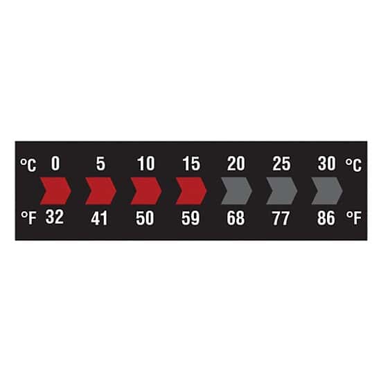 | Description | Reversible 7-Point Horizontal Temperature Label Black/Red, -22-32F/-30-0C; 10/Pk |
