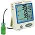 The unique 4-line display simultaneously shows external probe temperature, ambient temperature, internal humidity, and time of day. An audible and visual alarm alerts you when temperature levels are higher or lower than the programmable set points. User-settable parameters include date, time, sampling time, temperature unit of measure, high/low alarm set points, and auto power off.