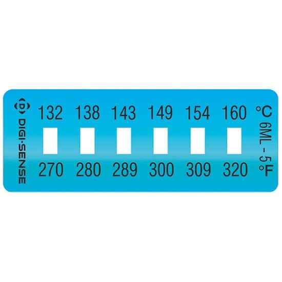 Digi-Sense Irreversible 6-Point Horizontal Temperature Label, 270-320F/132-160C; 10/Pk - 90308-95