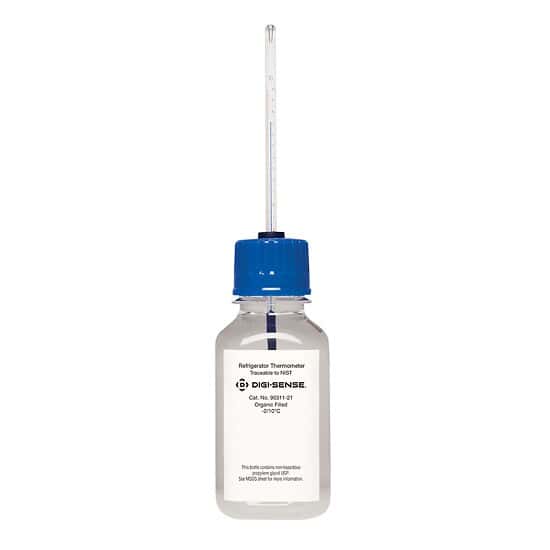Accurately monitor temperatures in freezers, refrigerators, incubators, ovens, and other environments where stability is required. All thermometers are supplied in a glass bead filled unbreakable plastic bottle and can be removed from the bottle for recalibration. Use the magnetic attachment with pressure-sensitive backing to attach the bottle to a metal wall or door.