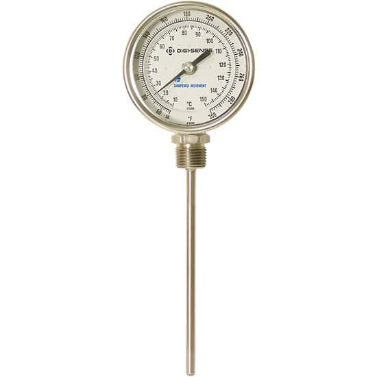 Digi-Sense Bottom-Mount Bimetal Thermometer, 5 in. Dial, 4 in. L; Range; 25-125F/-5-50C - 90551-02