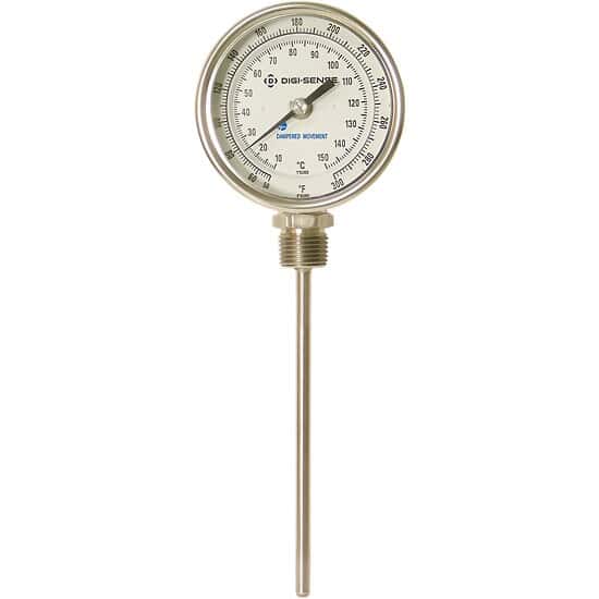 Digi-Sense Bottom-Mount Bimetal Thermometer, 5 in. Dial, 24 in. L; Range; 0-250F/-20-120C - 90556-01
