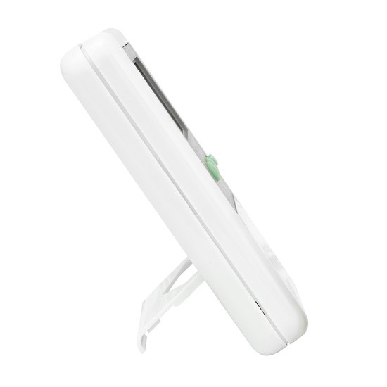 NIST-traceable calibration certificate with data, plastic stand, double back tape and Velcro® for attaching holder to any surface, probe(s), and two AA batteries