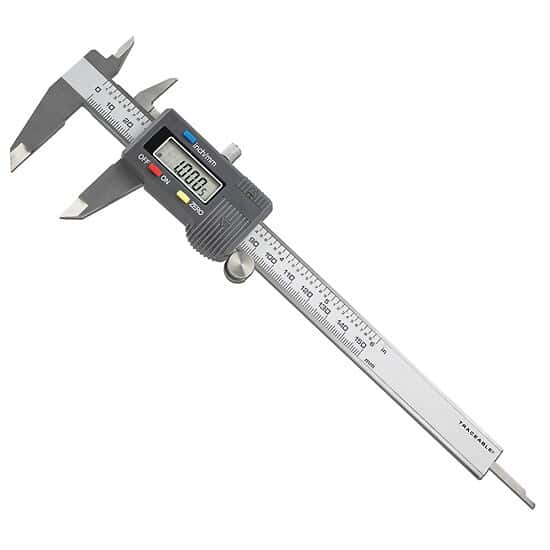 These stainless steel digital calipers measure inside diameter, outside diameter, and depth. Easily switch from inches to millimeters with the touch of a button. Fine-adjustment thumb roller improves reading speed and position-holding lock screw sets length.