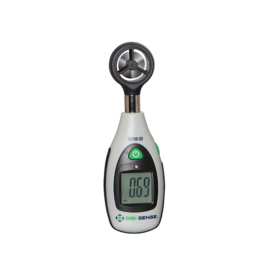 Precision, value, and convenient size in one meter! The Digi-Sense compact vane anemometer delivers accurate airflow measurements in seven user-selectable units. Its small comfort grip and ergonomically placed pushbuttons allow you to easily select either maximum or average air velocity readings.