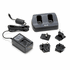 Stand-alone 2-bay battery charger, including power supply with multiple plugs.