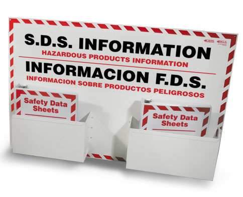 GHS Safety Data Sheet Information Center provides a central place to easily access all S.D.S. sheets for your plant or office. The Center comes with a sturdy metal pocket designed to hold the included binder. The mounting board is constructed of 1/4" plastic with 4 mounting holes to provide easy mounting and years of durability. Each center comes with 2 standard 3 ring SDS printed binders with A - Z alphabetical dividers to sort all of your Safety Data Sheets. The mounting board is constructed of 1/4" plastic with 4 mounting holes to provide easy installation and years of durability. 24" x 36" English / Spanish