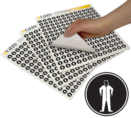 GHS1237 Full Body Suit PPE Hazard Class Pictogram Label (1/2"), 1820/Pad by GHS Safety