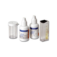 HI 38049 test kit comes with 20 mL ammonia reagent (for fresh water), 20 mL Nessler reagent, checker disc, glass vials with caps (2) and 3 mL plastic pipette.