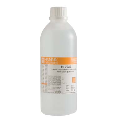 12880 µS/cm (12.88 mS/cm) calibration solution is widely used to assure the proper performance of conductivity meters with a scale higher than 10 mS/cm.