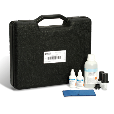 Maintenance kit: rugged carrying case including HI 93102-0 and HI 93102-20 calibration solutions, HI 93703-50 cuvette cleaning solution, cuvettes (2) and cuvette cleaning cloth.