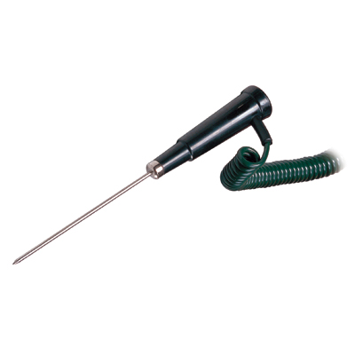K-type thermocouple probe with sharp tip for penetration of semi-solid samples.