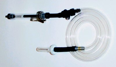 - Adjust flow to required rate using needle valve shown at top at end of hose