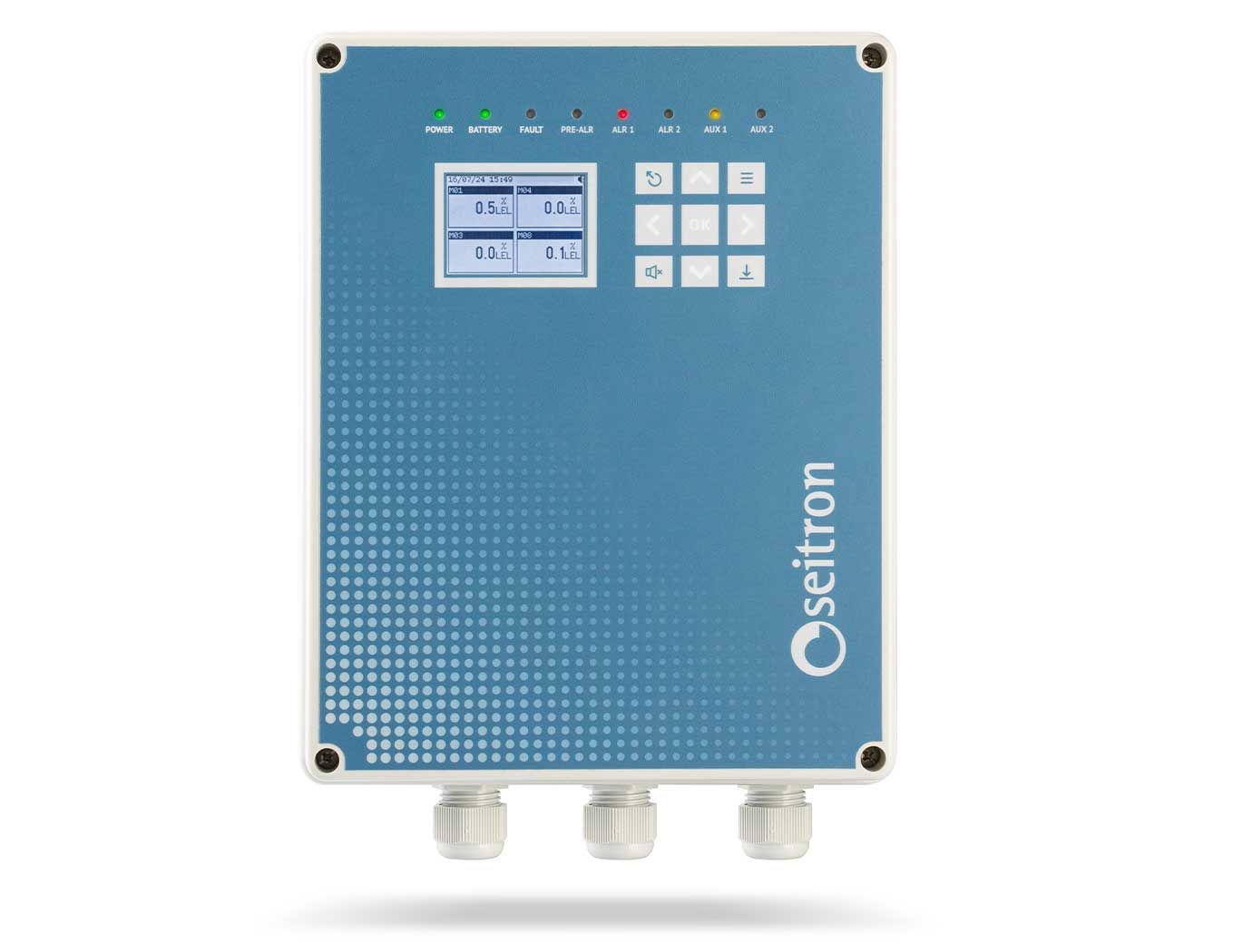 The programmable gas detection control unit from Seitron represents an advanced solution for managing safety in industrial and commercial environments. Designed to monitor up to 40 gas transmitters (32 Modbus® + 8 (4...20mA) slave units), this unit offers reliability, precision, and versatility.