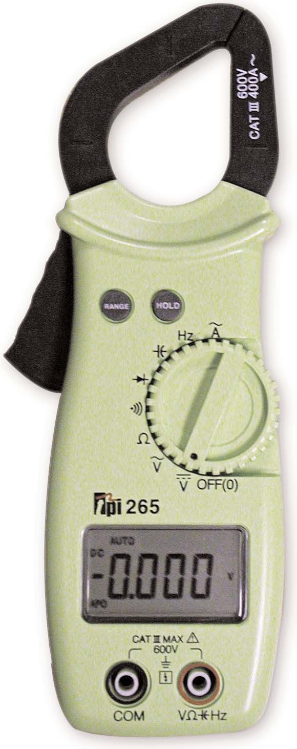 The 265 is a hand-held, autoranging clamp-on DMM. Extra large numerals, capacitance, frequency and data hold are just a few of the features of the 265. An affordable choice, the 265 offers measurements in all basic electrical functions.