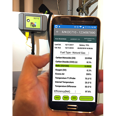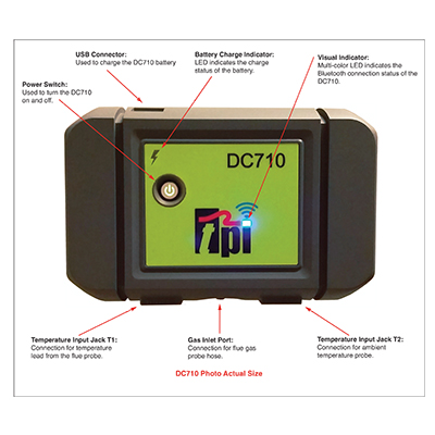 - Operate remotely via Bluetooth using your Smartphone or tablet and the free TPI app. No need for long probe hoses - you can be at the control center with your smartphone, while the DC710 does the work at the stack.
