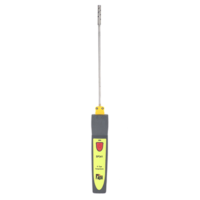 K-Type single input thermometer with industry standard sub-mini connector. Use with TPI Smart Probe App to display temperature on a smart phone. Measure T1, T2 and calculate T1-T2 using a single SP341 or two SP341's at the same time.