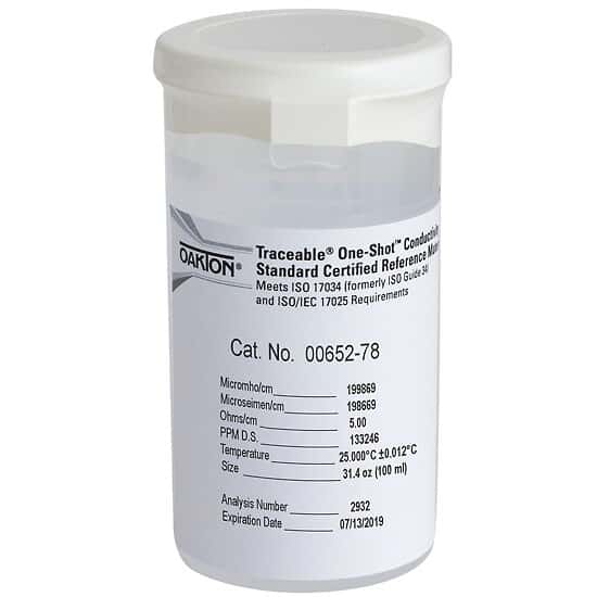 | Description | Oakton Traceable® One-Shot™ Conductivity and TDS Standard, 200,000 μS; 6 x 100 mL Vials |