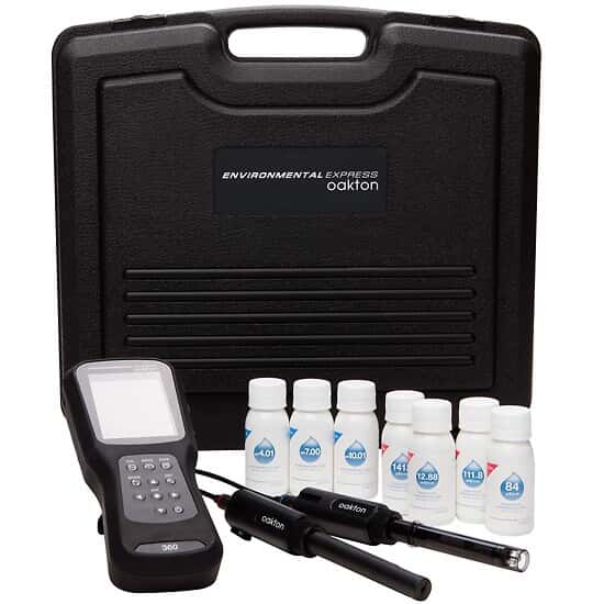 | Accessories Included | pH sensor head, pH sensor cartridge, pH buffer set, EC sensor head, EC sensor cartridge, conductivity standards set, four AA batteries, wireless SD card, and carrying case |