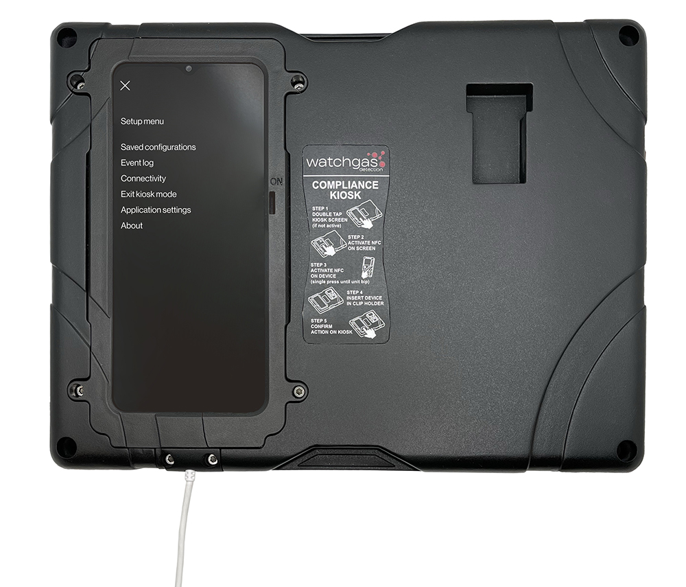 The WatchGas Compliance Kiosk works as a terminal to allow the user to check in the gas detector, providing a full overview of the device status and any unforeseen events. The WatchGas compliance Kiosk automatically sends all data to a designated software site. This provides a cost-effective overview of fleet health, predictive maintenance, events, and alarms. Furthermore, the WatchGas Compliance Kiosk provides the ability to manage the detector settings and user assignments actively.