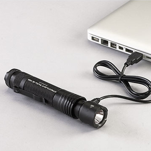 Model 7409 - USB Rechargeable LED Flashlight is a versatile tactical light that can charge from multiple sources. It uses three battery types: a rechargeable lithium ion battery, two CR123A batteries, or commercially available rechargeable Li-Ion cells. This light will charge from a laptop or most USB wall chargers. Multi battery versatility means you can always use primary disposable cells to power the light when a charging source is not available. Designed for use in all markets, it features a tail cap switch for momentary or constant on operation, three different user selectable programs and a pocket clip for convenience. The aluminum housing with Type II Military Spec anodizing helps make the light extremely durable and abrasion resistant. Packaged with a removable pocket clip and holster. Available in Black.